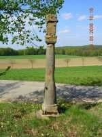 96260 Wallersberg (BY, Ofr., ca. 6 km südl. Weismain). Marter (Sandsteinsäule, 17. Jh.) nordöstl. der Wallfahrtskapelle St. Katharina. Die Säule ist ringsum abgeschliffen, sodass sie geradezu „tailliert“ erscheint. (23.04.2006, Fotos Wallersberg1, Wallersberg2)