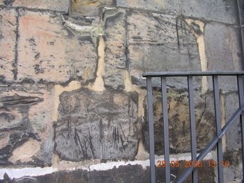 am südwestl. Eckpfeiler des Schiffes (nach W hin). Alle S nur etwa 10cm lang,