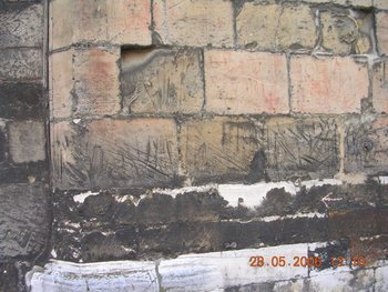 und Sandstein: südl. am Turm eine Serie von R (25.05.2006, Bild Wollersheim).